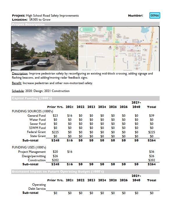 The High School Road Safety Improvements Project is planned for construction before the end of the year. This location has been identified in the City’s Island-wide Transportation plan as having the highest number of collisions, including those involving pedestrians and bicyclists.  A Focused Traffic Study was completed in 2017 identifying safety enhancements for the roadway.  This project is funded by the State 2018 City Safety Program/ Federal Highway Safety Improvement Program grant.